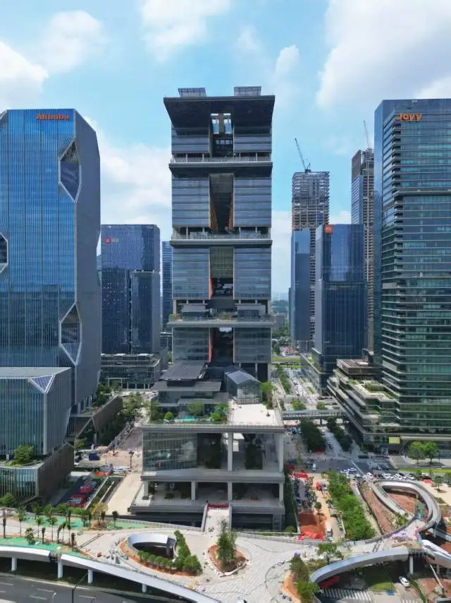 该建筑采用“垂直城市”理念,设置4道单边悬挑平台,创下国内超高层直挑结构首例。该建筑包含智慧办公、公共艺术空间及市民开放区域,为腾讯在粤港澳大湾区的重要战略布局。